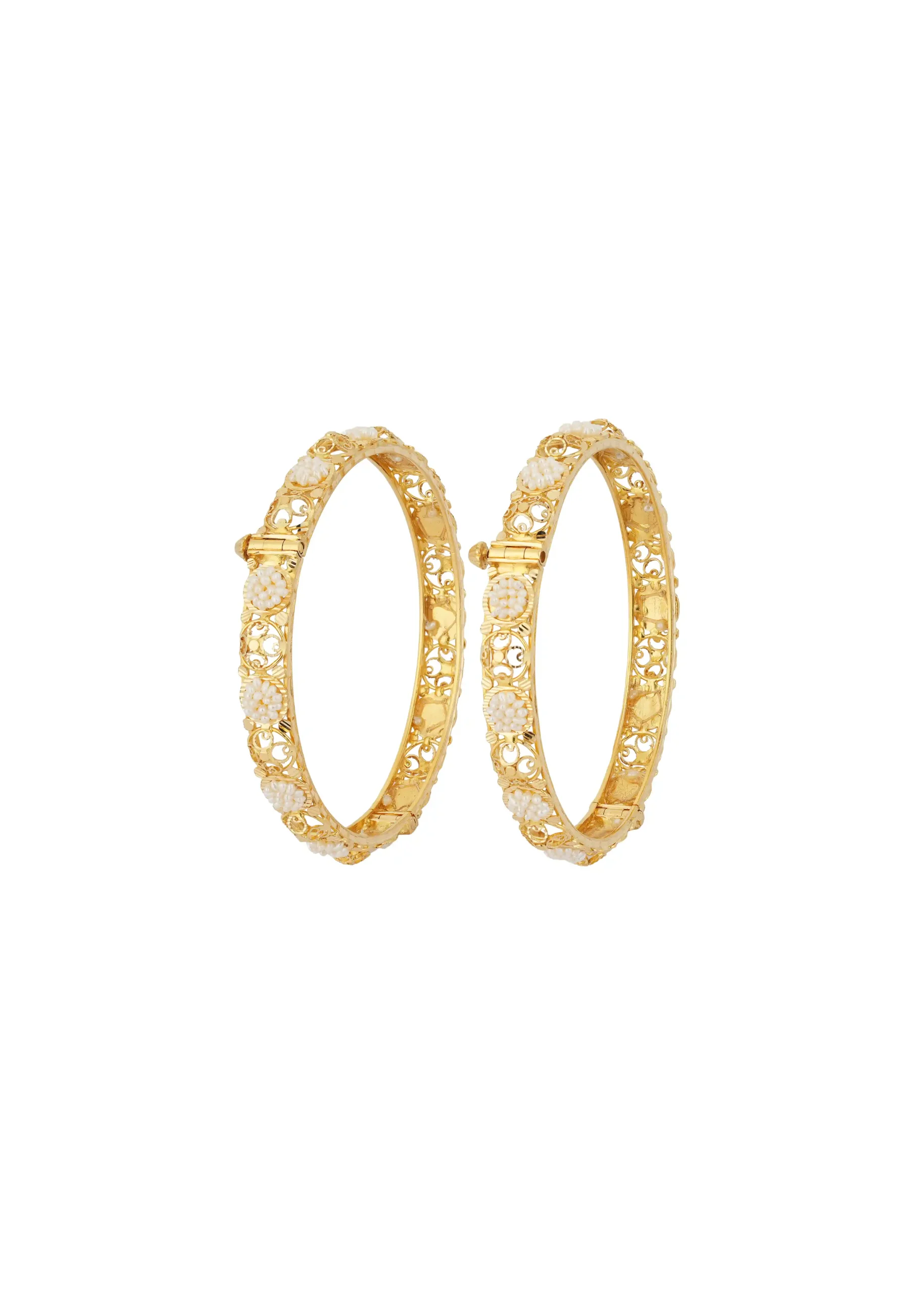 Embrace timeless elegance and traditional charm with the exquisite Aaradhya Floral Gold Kadli. Beautifully crafted with delicate floral motifs, this kadli reflects classic Indian artistry blended with graceful design. The intricate patterns symbolize beauty, purity, and prosperity, making it a perfect adornment for women who cherish tradition with sophistication.