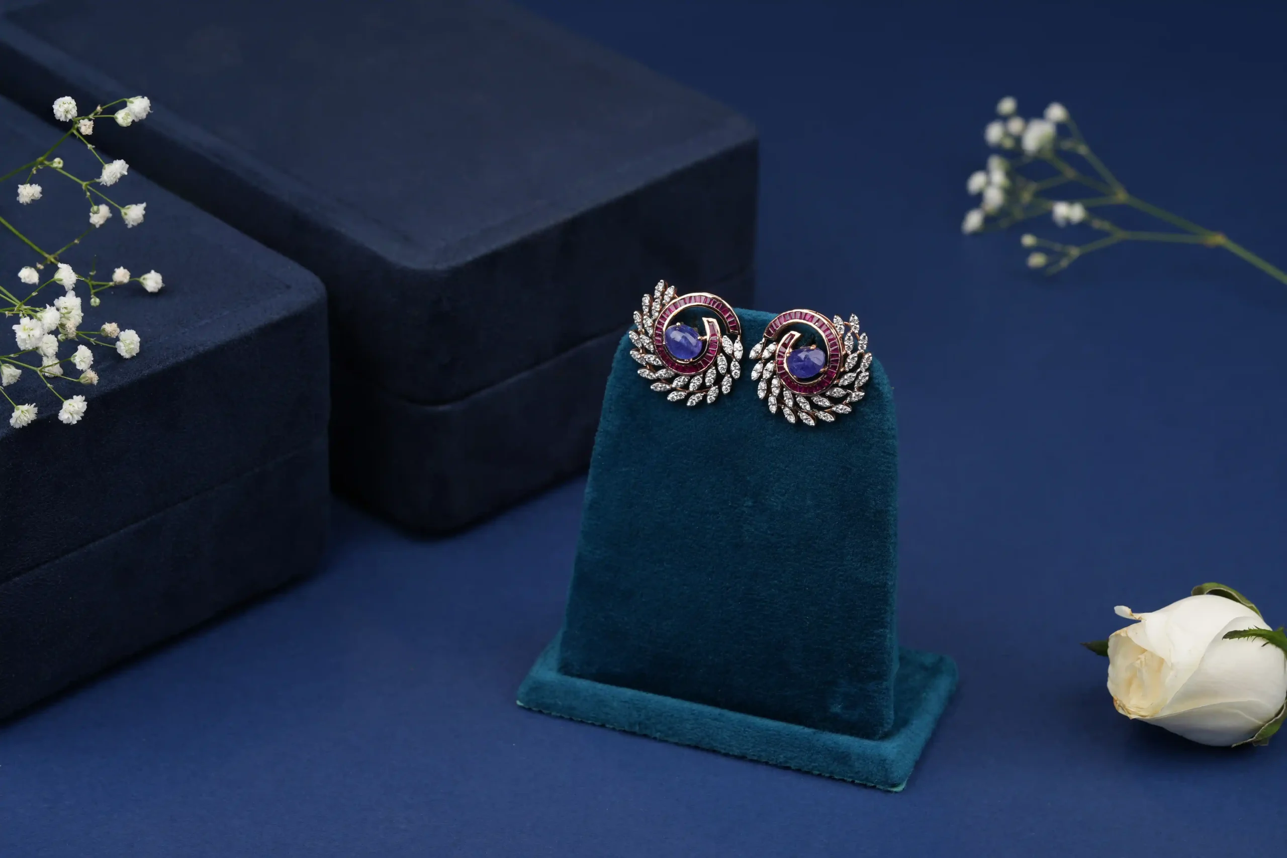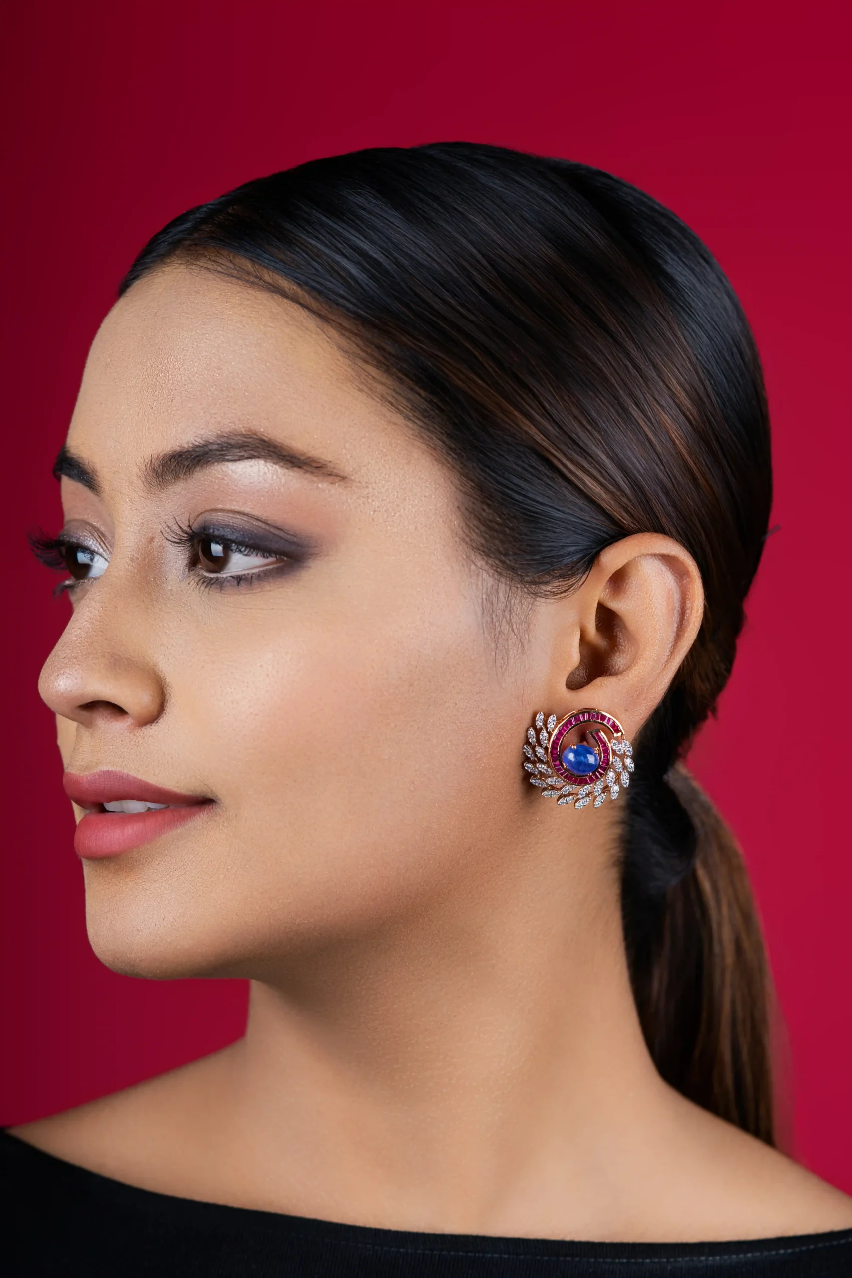 The Aarohi Ruby Royale Set is a striking expression of regal elegance and timeless charm. Featuring a rich ruby-toned center stone encircled by sparkling diamond-look accents, this set radiates royal sophistication. The balanced design and brilliant contrast make it a standout piece that enhances both traditional and modern looks.