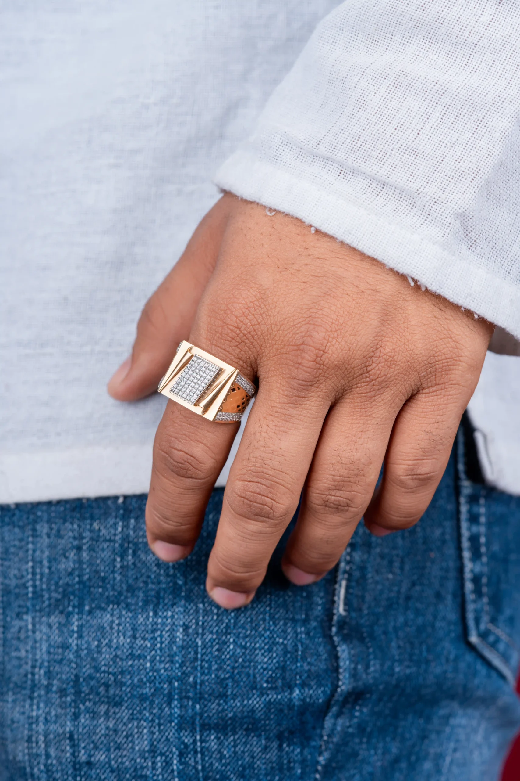 Bold. Modern. Unapologetically luxurious. The Architect Royale Statement Ring is crafted for the man who appreciates structure, strength, and standout style. Featuring a striking geometric panel design enriched with shimmering CZ stones, this ring blends architectural precision with regal sophistication. The intricate lattice side-detailing adds depth and character, giving the piece a unique, high-end appeal from every angle.