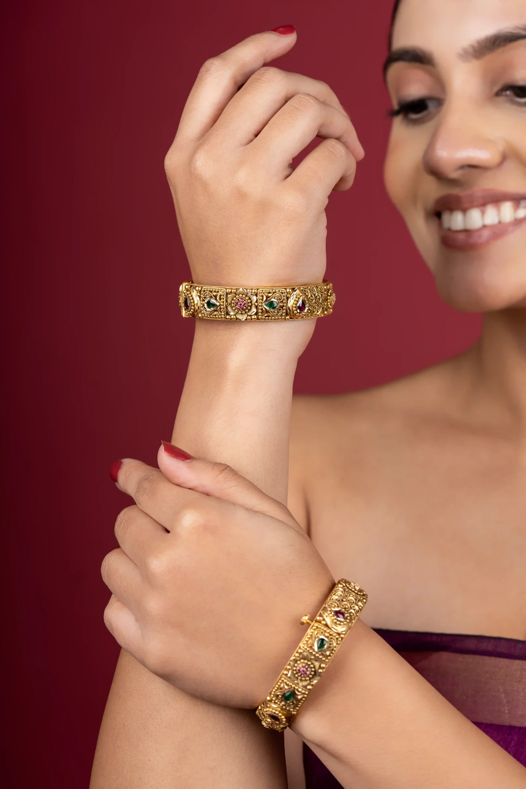 This Classic Ethnic Gold Kangan reflects timeless Indian tradition with its elegant detailing and refined craftsmanship. Designed in high-quality gold, it features a rich ethnic pattern that adds depth and character to its classic form. The smooth inner finish ensures comfortable wear, while the graceful design makes it suitable for daily wear as well as festive and traditional occasions. A versatile and enduring piece, this kangan beautifully complements both traditional and contemporary attire.
