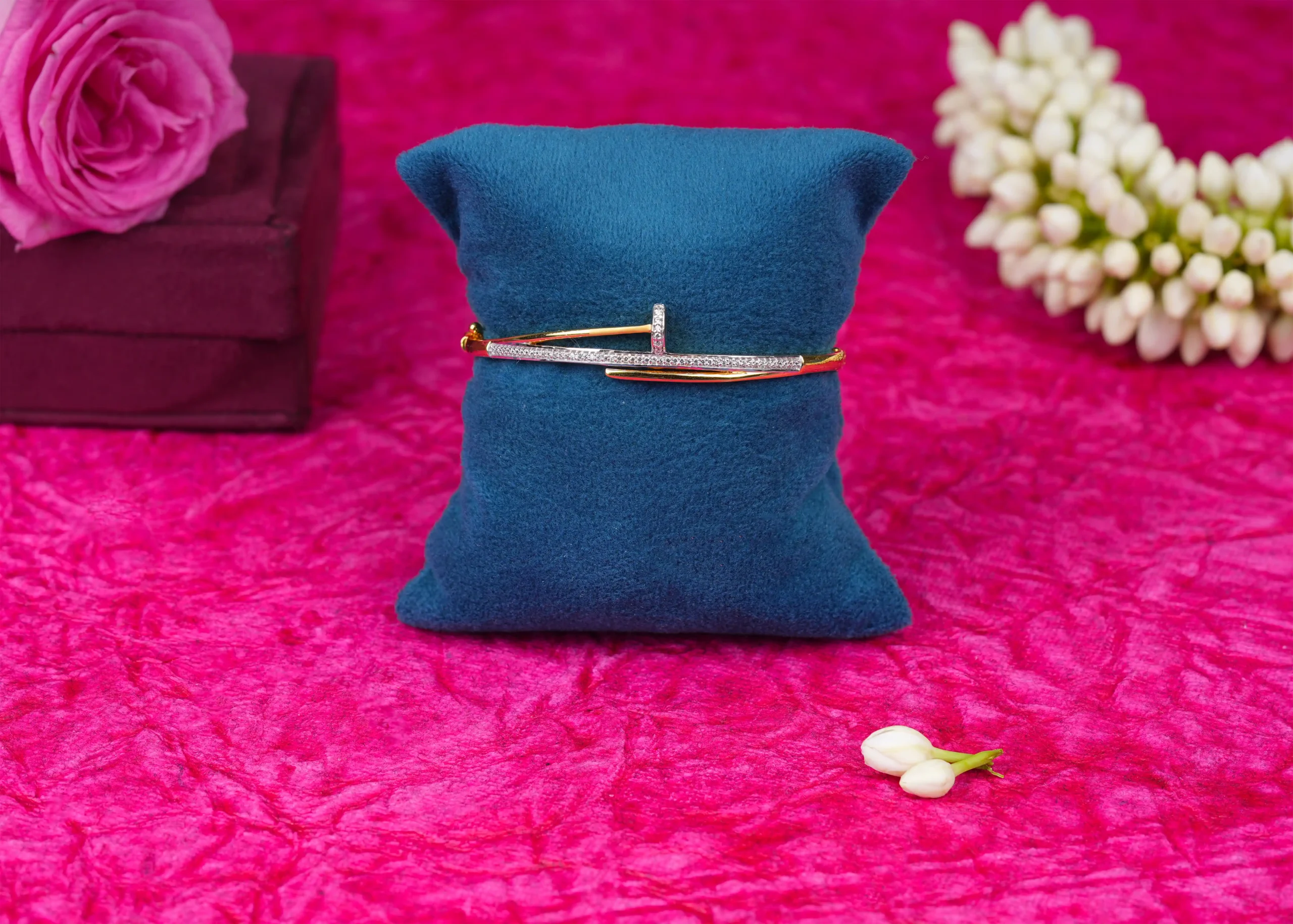 This Designer Emerald Style Gold Bracelet embodies refined elegance with a modern minimalist touch. Crafted in high-quality gold, it features a delicately set green stone that adds a subtle pop of color and sophistication. The slim, lightweight design ensures comfortable everyday wear, while its clean lines make it easy to pair with both casual and formal outfits. Perfect for daily wear or understated festive styling, this bracelet is a graceful expression of simplicity and timeless charm.