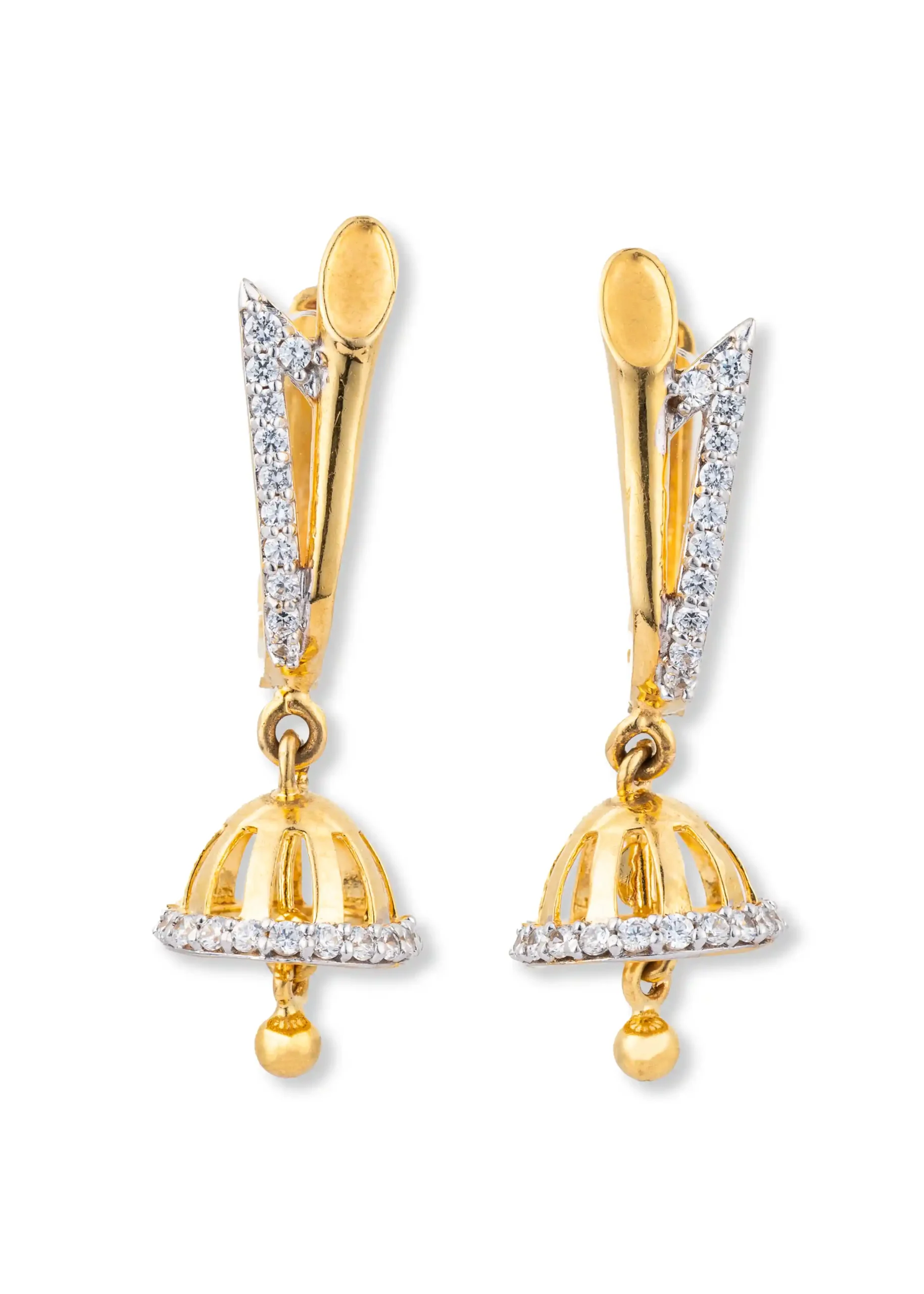 Add timeless sparkle to your jewelry collection with our Diamond Cut Jhumka Earrings. Designed in a radiant gold-tone finish, these elegant earrings feature a classic jhumka dome enhanced with dazzling diamond-cut stones that shimmer beautifully with every movement. The sleek stone-studded hoop adds a modern touch to the traditional design, creating the perfect blend of heritage and contemporary style.