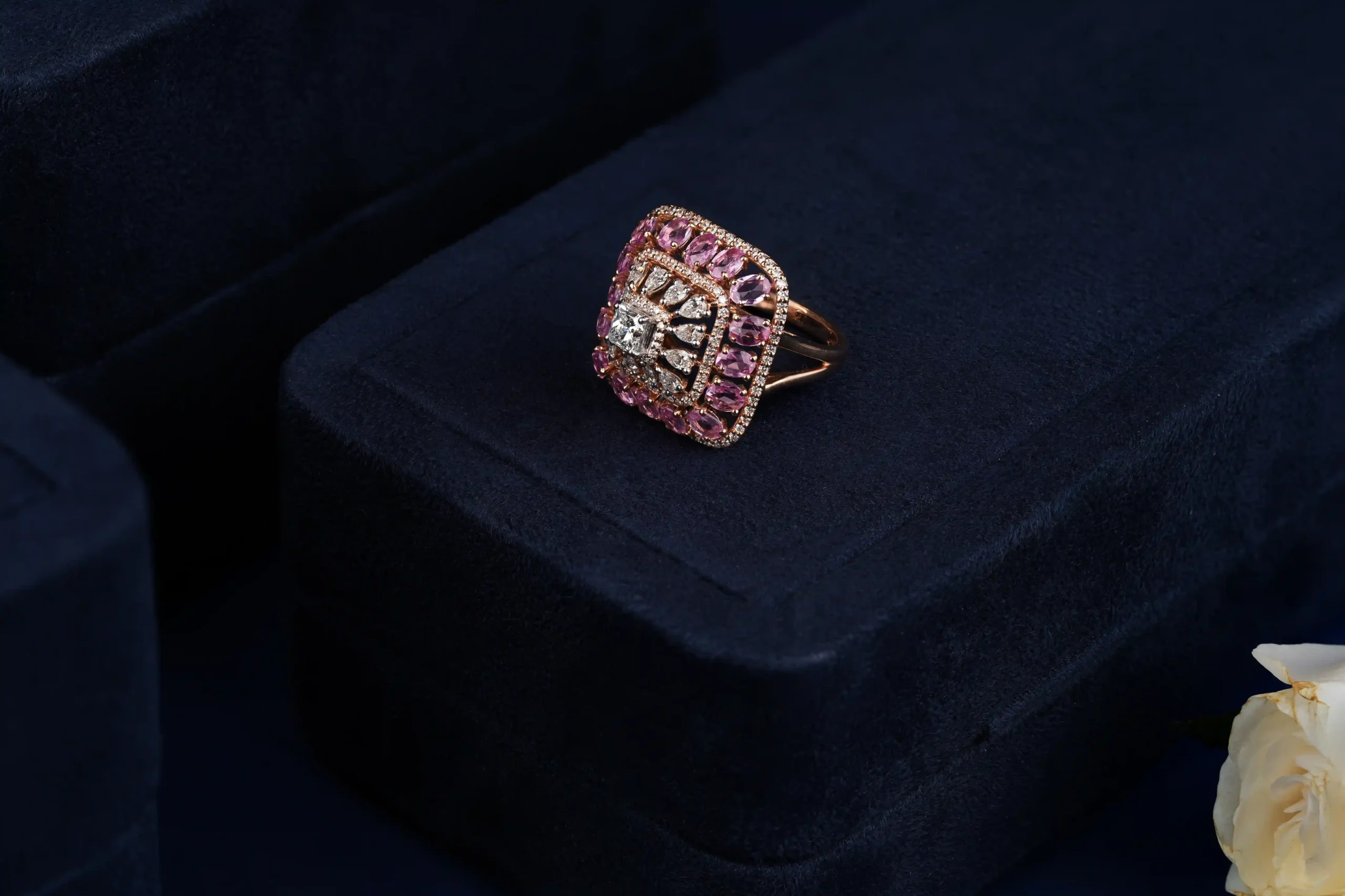 Delicate yet captivating, the Eternal Blush Crystal Ring is a perfect expression of timeless elegance and feminine charm. Featuring a beautifully crafted square centerpiece adorned with soft blush-pink crystals, this ring reflects a graceful glow that enhances every gesture.