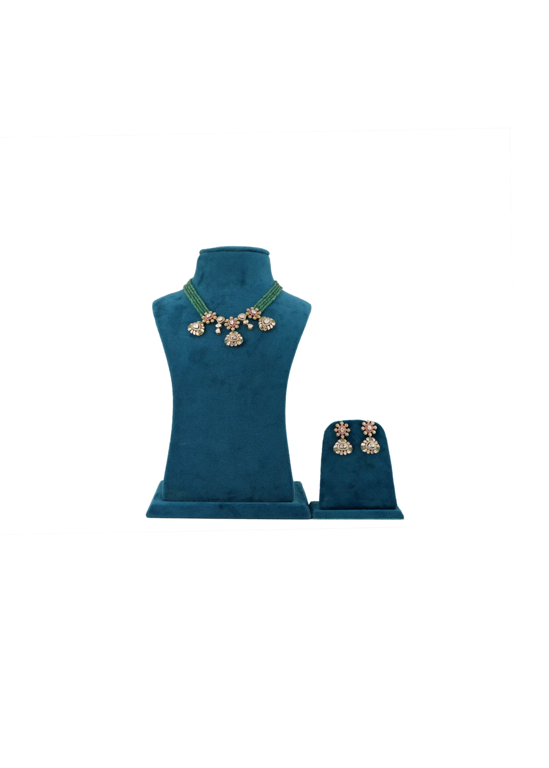 “A luxurious gold set featuring real emeralds and authentic Polki stones, crafted for timeless royal elegance.”