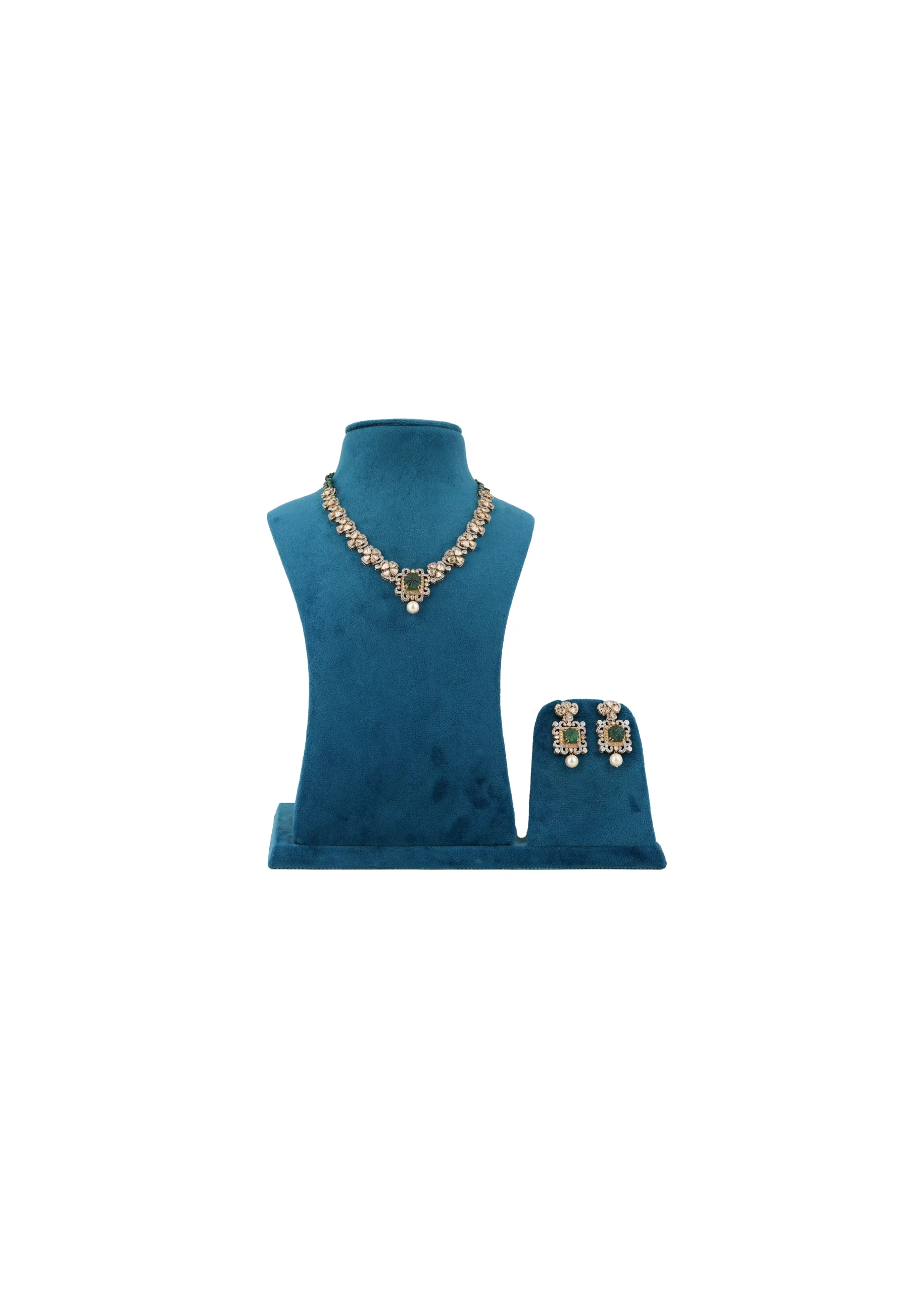 “Exquisite gold Polki jewellery with green accents, perfect for weddings and festive occasions.”