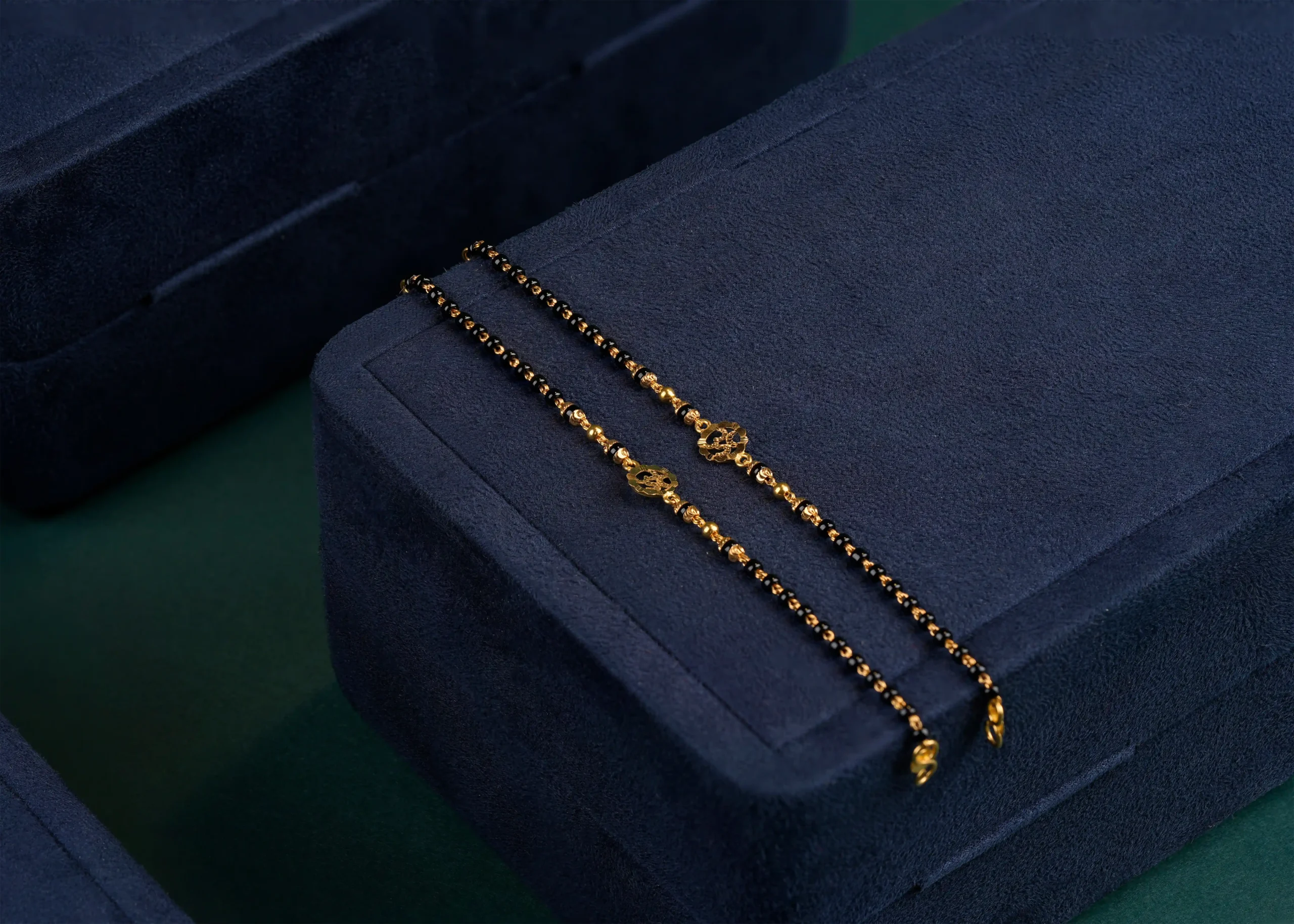 The Golden Blossom Nazariya is a graceful blend of tradition and elegance, thoughtfully designed for little ones. Crafted with classic black beads and polished gold accents, this nazariya is highlighted by a delicate floral gold charm at the center, symbolizing purity, positivity, and protection.