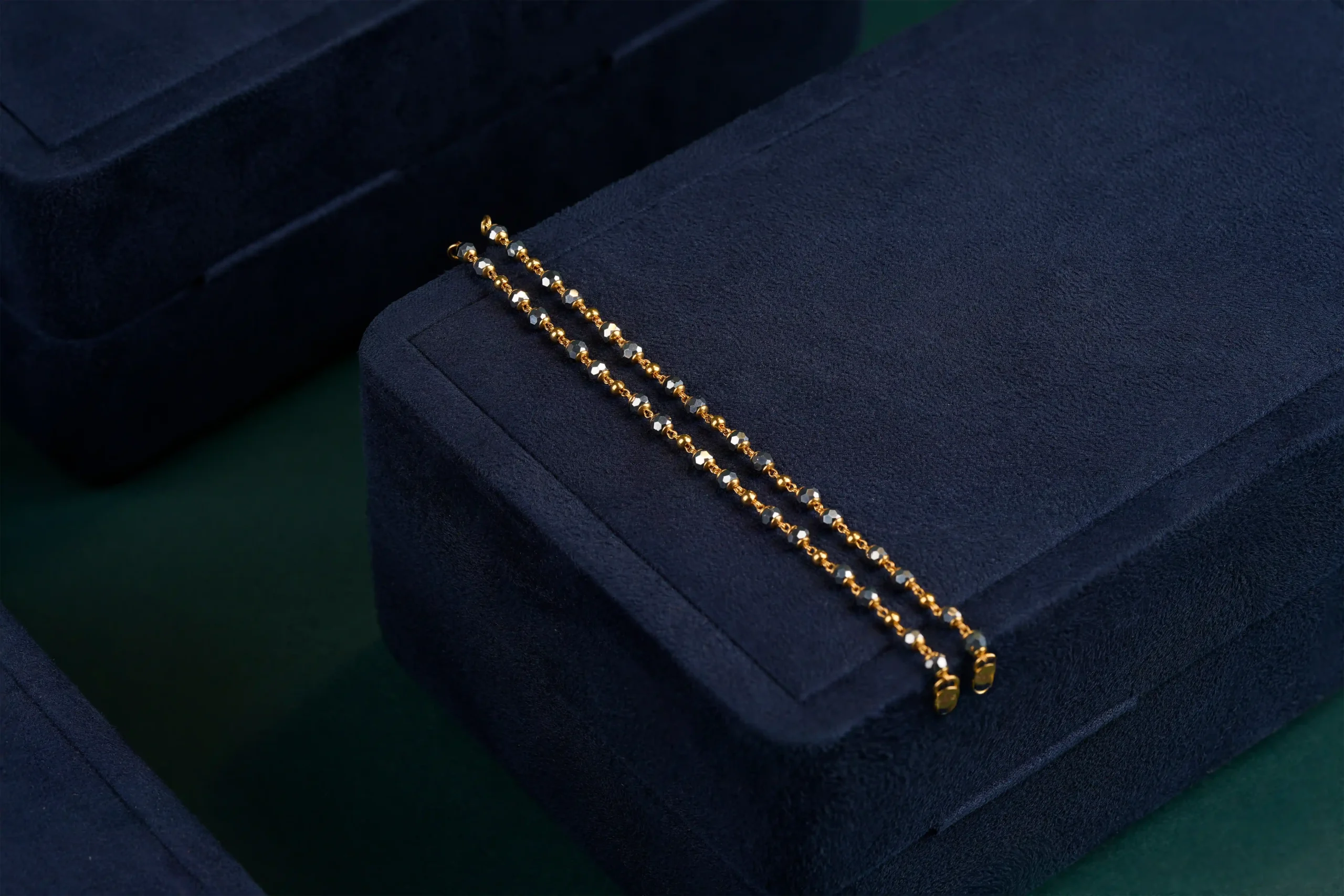 The Little Star Blue Nazariya is a delicate and meaningful bracelet designed to offer protection with a touch of charm. Crafted in polished gold, this nazariya features tiny gold beads paired with soothing blue accent beads, traditionally believed to ward off negativity and bring positive energy.