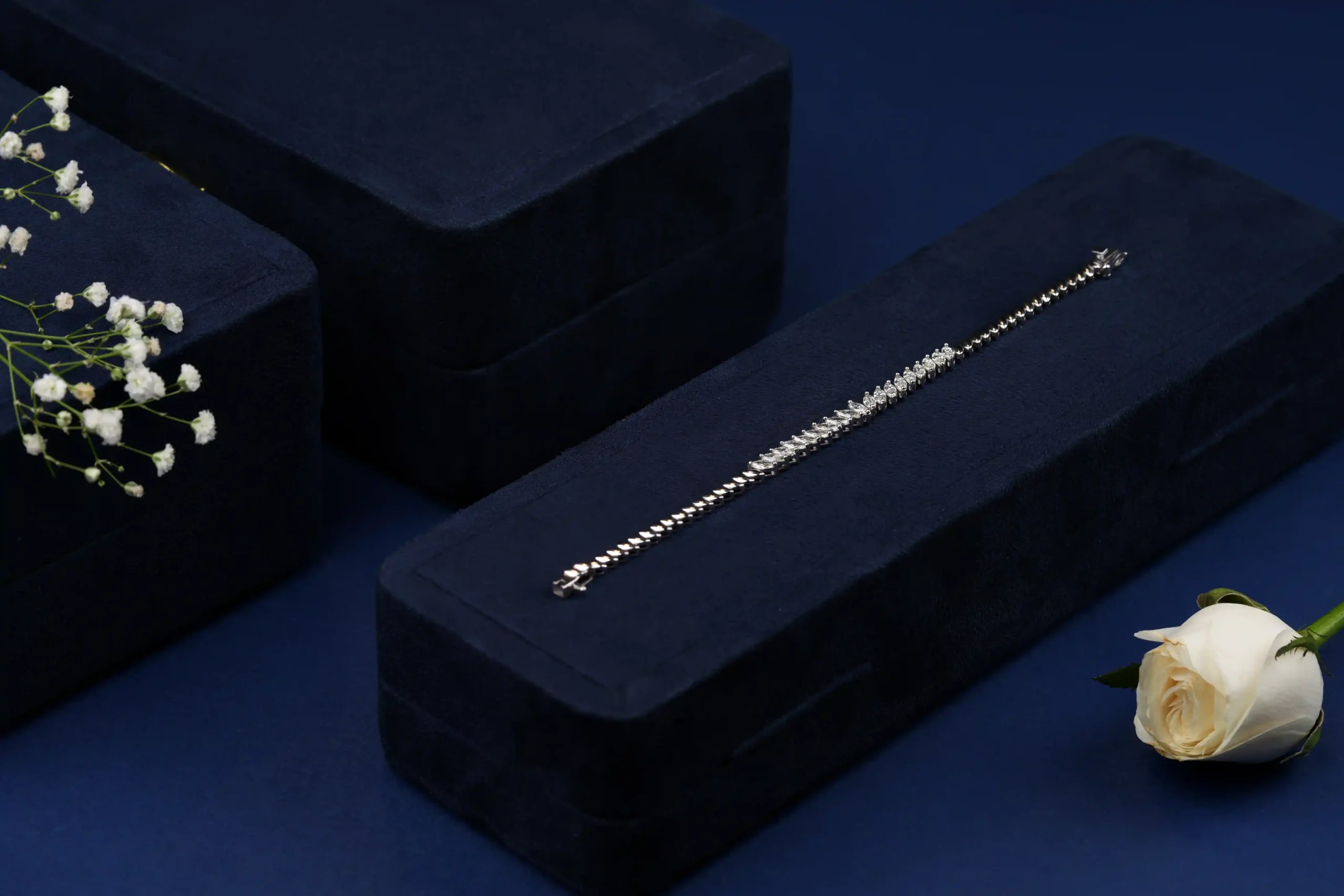 Delicate yet radiant, the Noor Chamak Silver Lucky Bracelet is designed to bring elegance and positive energy into your everyday style. Crafted with a graceful line of shimmering stones set in polished silver, this bracelet reflects a soft, continuous sparkle—symbolizing light (Noor), luck, and timeless beauty.