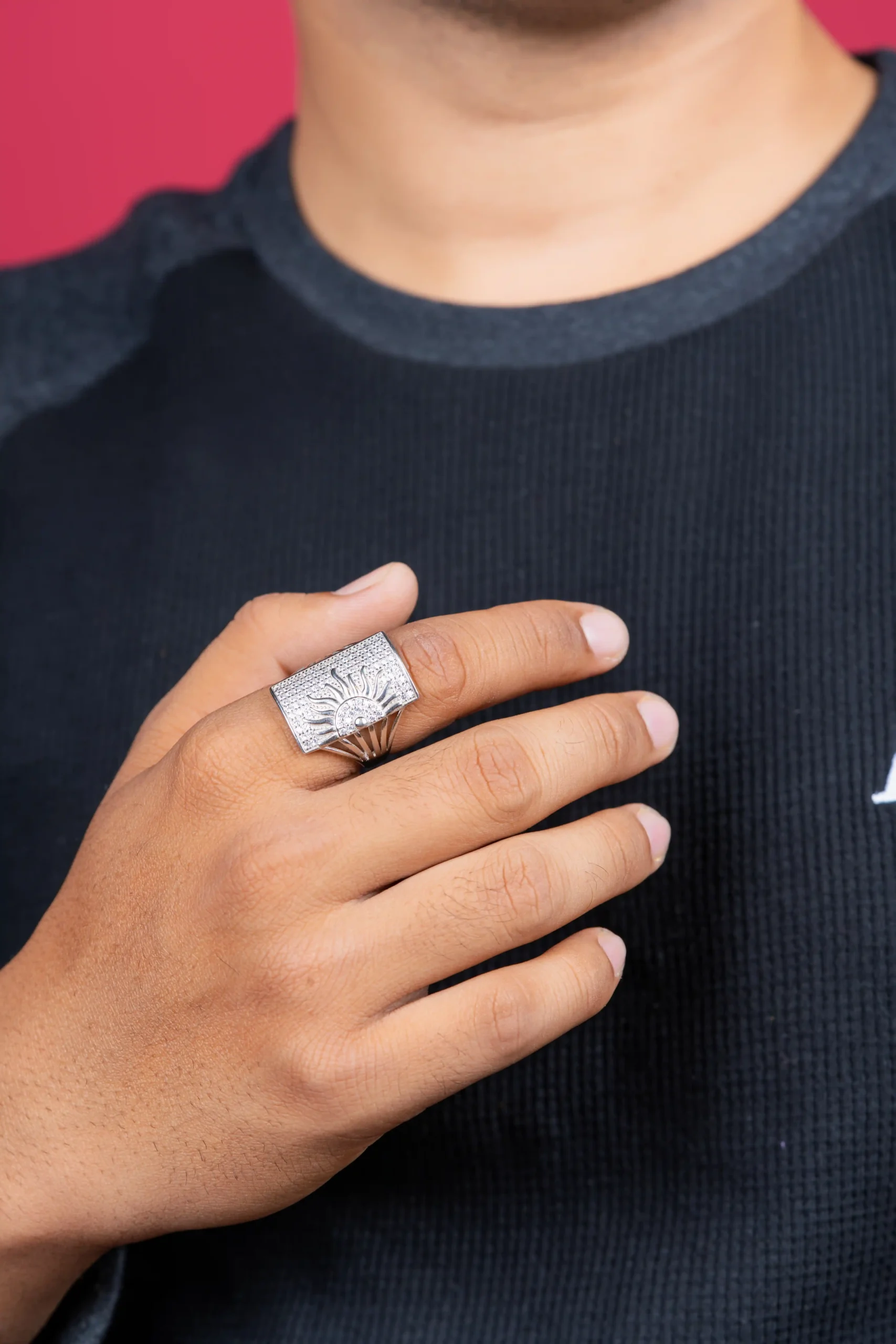Bold and commanding, the Royal Forge Silver Ring is designed for men who value strength, craftsmanship, and timeless style. Featuring a solid rectangular profile with finely textured detailing, this ring reflects the power and precision of master forging.
