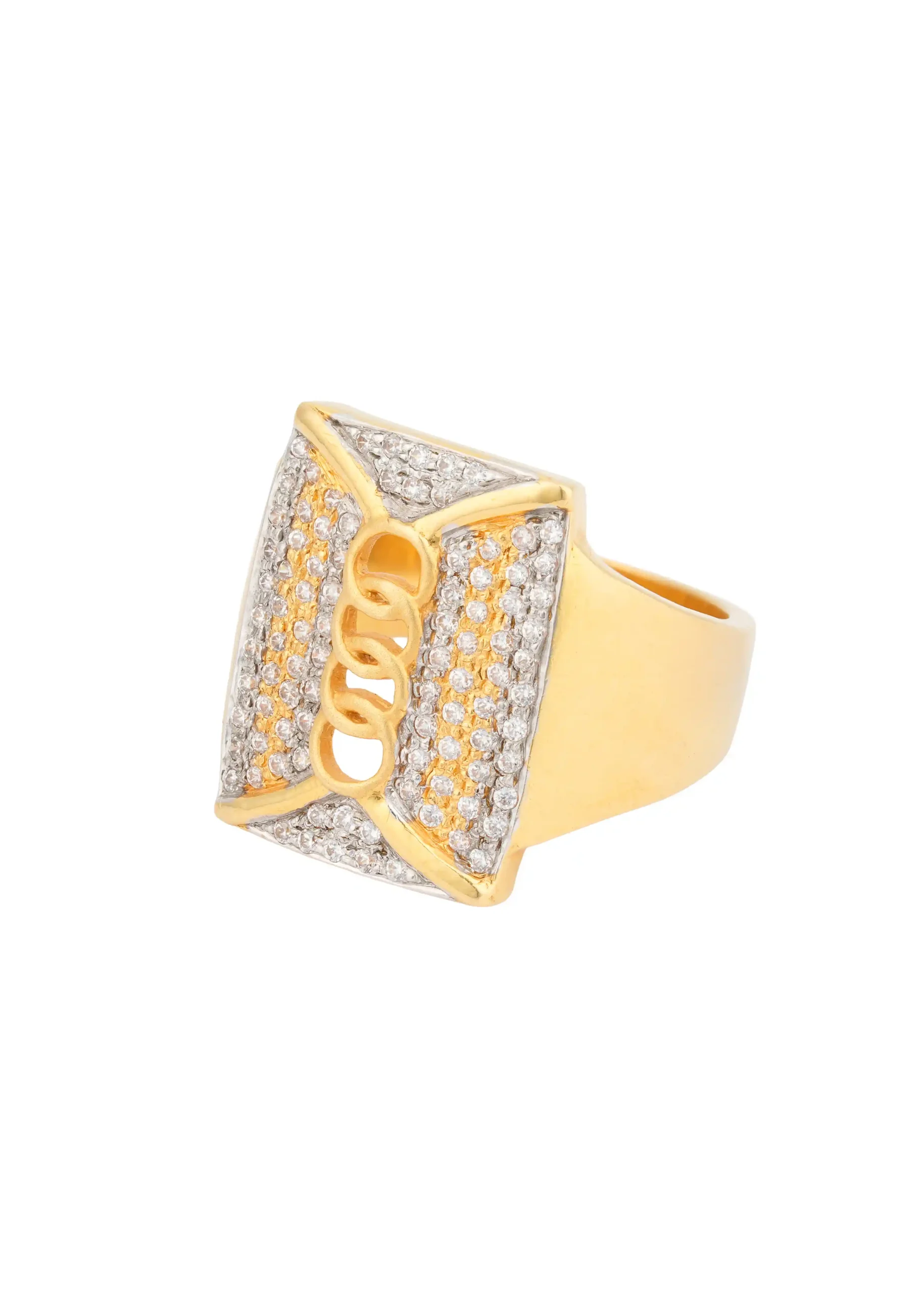 Step into the world of timeless luxury with the Royal Zenith Majesty Ring. Designed to reflect strength, prestige, and refined elegance, this ring features a bold square face adorned with shimmering CZ stones that radiate brilliance from every angle. At the center rests a beautifully sculpted golden crest design, symbolizing power and distinction.