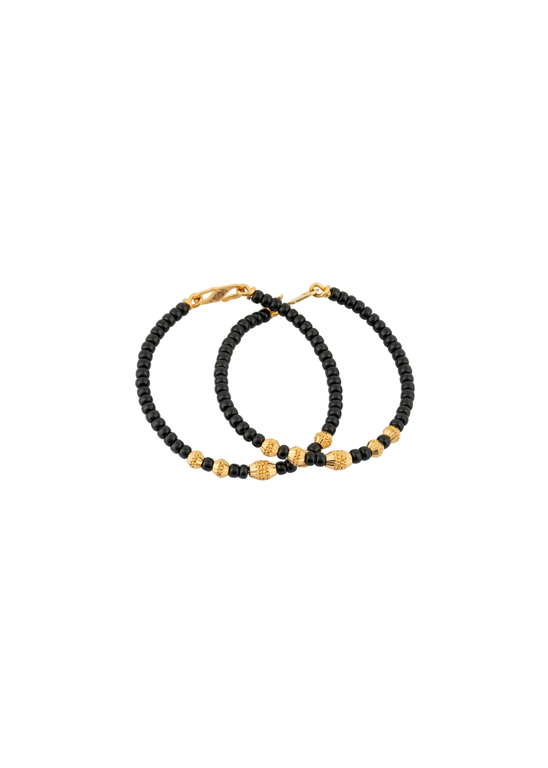 The Sacred Pair Black Bead Nazariya is a timeless symbol of protection and tradition, thoughtfully crafted as a matching pair for little ones. Designed with classic black beads and polished gold accents, this nazariya pair is traditionally worn to ward off negativity and invite positive energy and well-being.