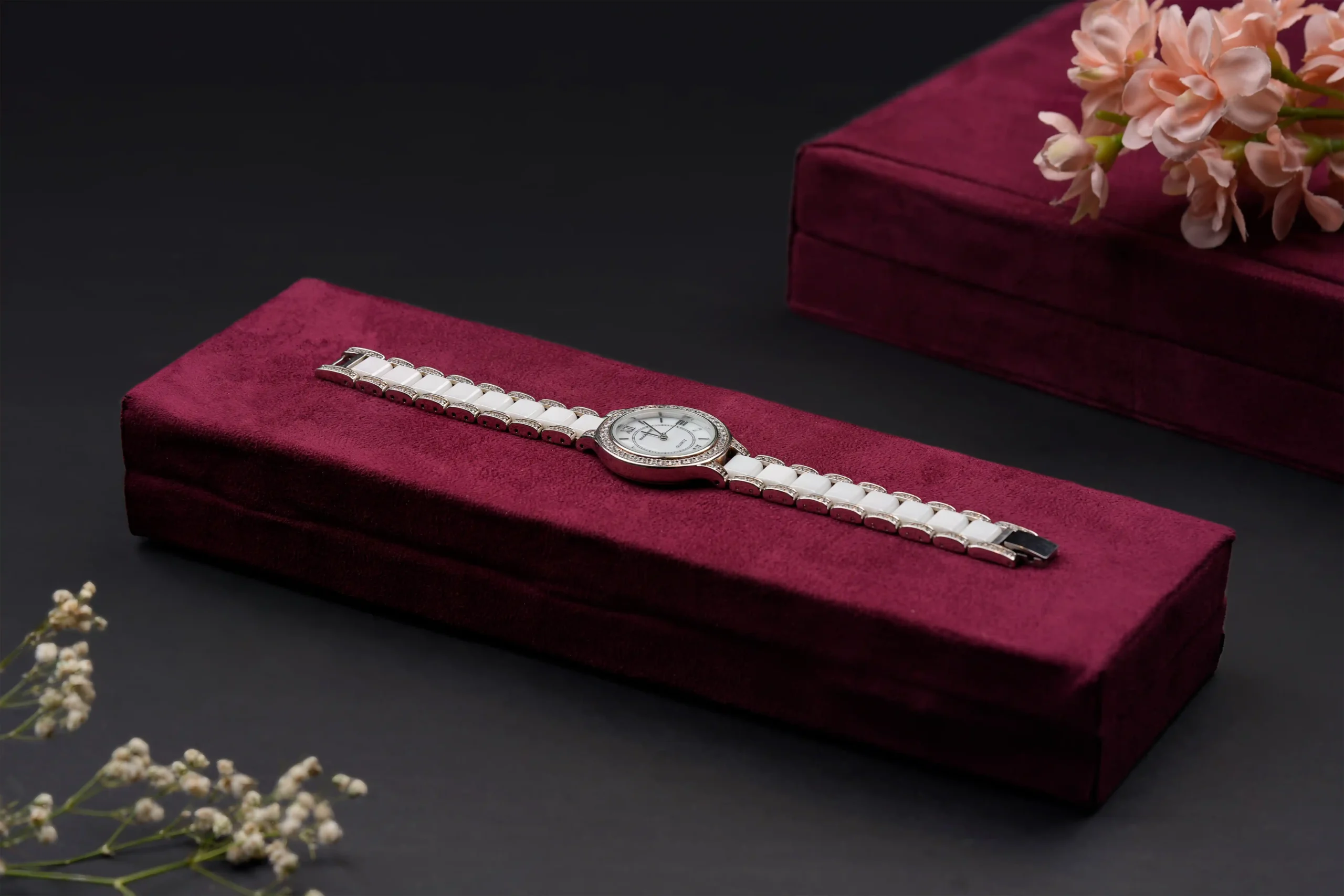 Gracefully designed for those who appreciate understated luxury, the Timeless Ivory Silver Watch blends classic elegance with modern refinement. Featuring a round dial framed with subtle crystal detailing and an ivory-tone bracelet, this watch radiates sophistication and charm.