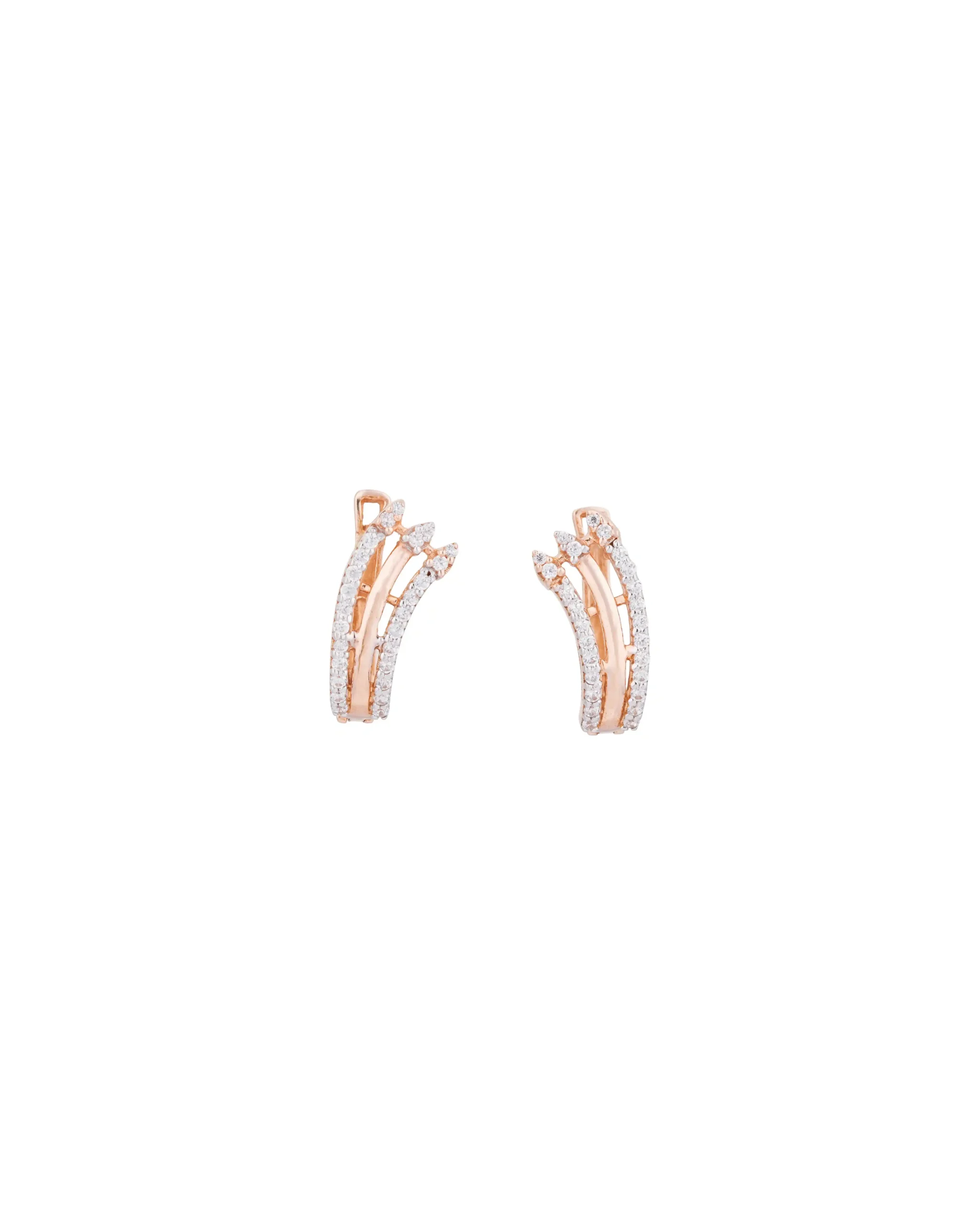 Make a graceful style statement with our Wave Design CZ Earrings. Beautifully crafted in a sleek gold-tone finish, these elegant earrings feature a flowing wave-shaped design adorned with sparkling CZ stones. The soft curved silhouette adds a modern touch of sophistication, while the shimmering stones catch the light with every movement.