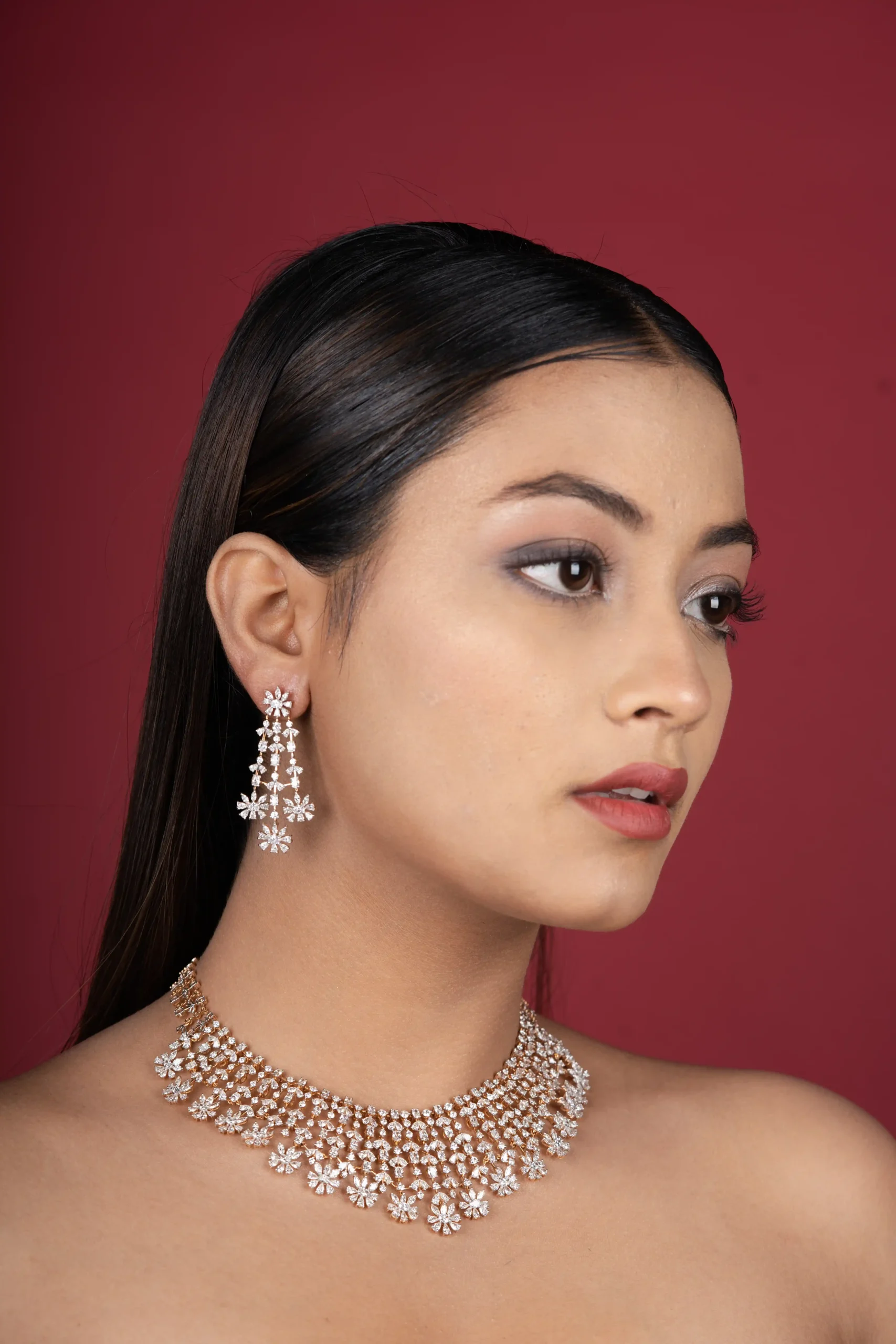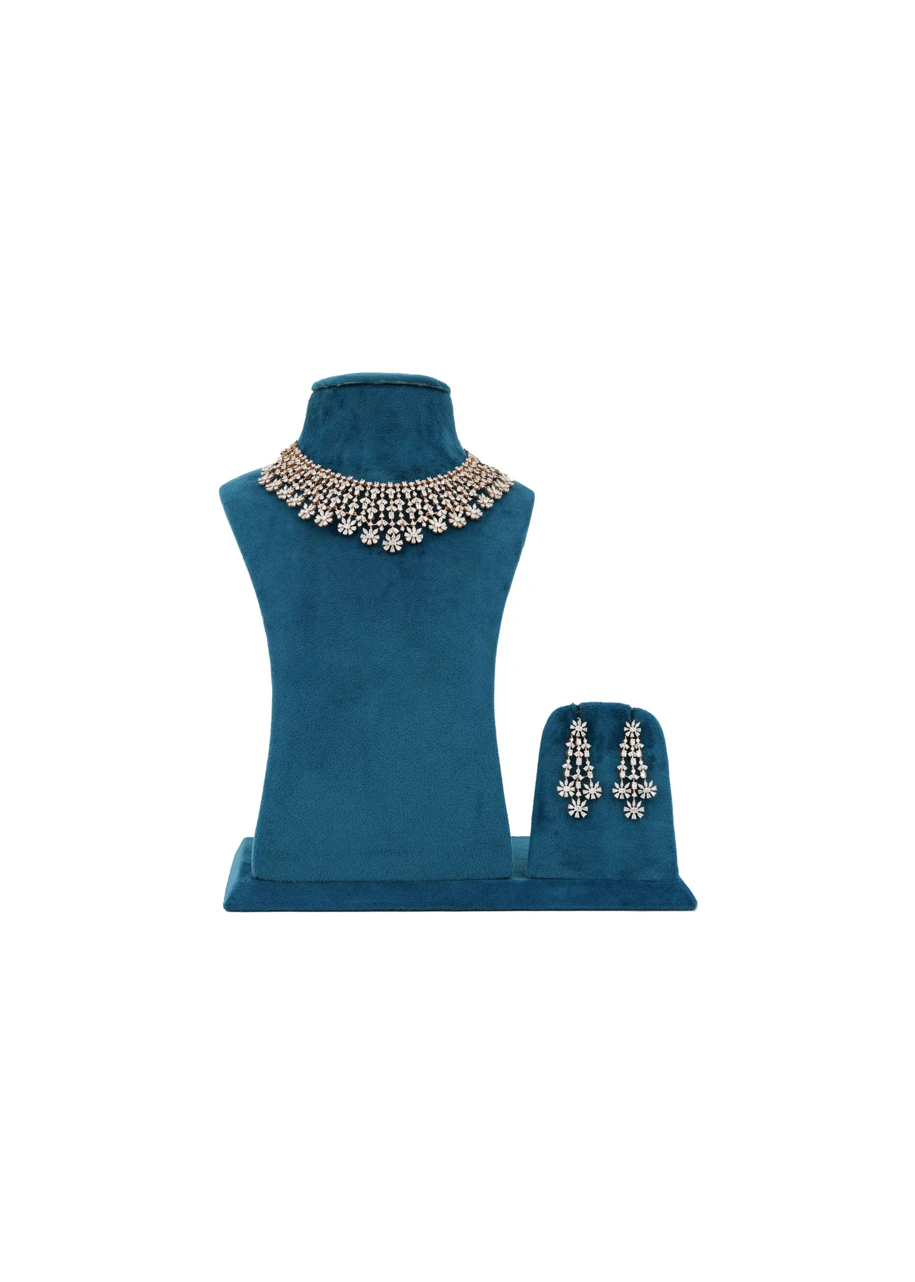The Ziva Celestial Blue Diamond Set is a graceful blend of modern elegance and celestial charm. Designed with sparkling diamond-look stones and soft blue accents, this set evokes the beauty of a starlit sky. The refined necklace and matching earrings come together to create a balanced, luminous look that enhances natural grace.